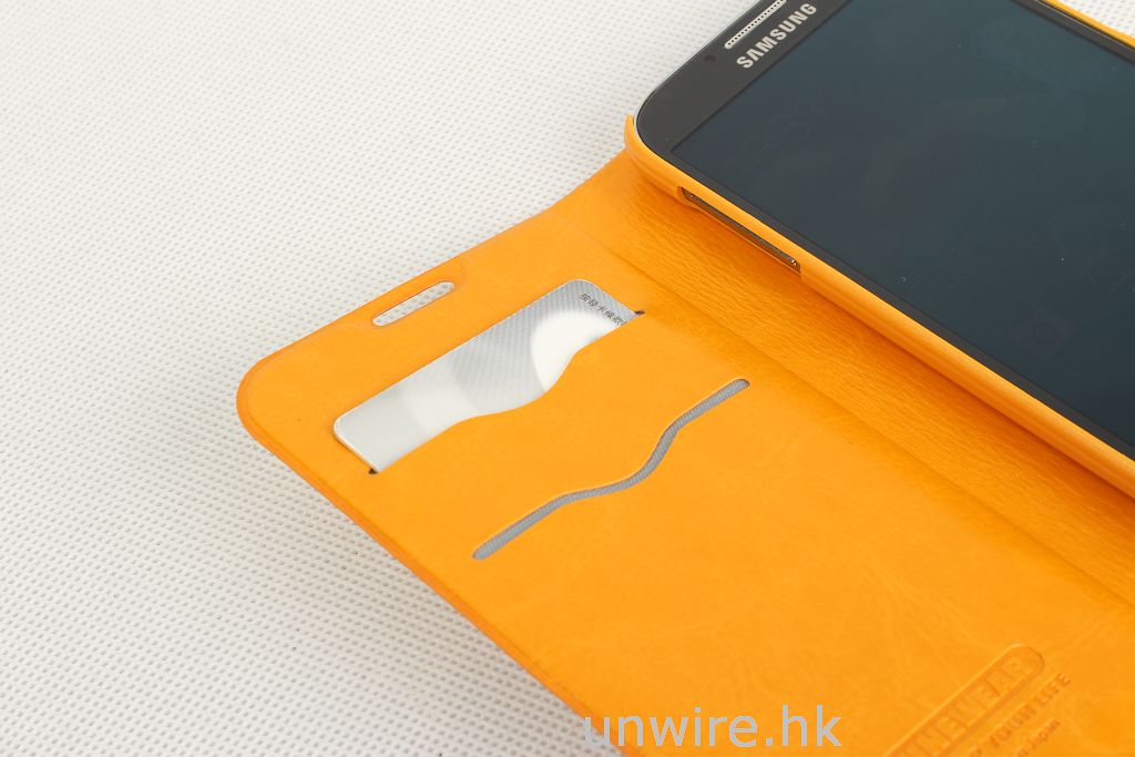 它的實用性真的很強,面蓋除可有效地保護屏幕外,並配有磁石支援休眠功能,面蓋開啟時 GS4 的屏幕都會同時開啟,面蓋蓋上時 GS4 的屏幕都會關上呈休眠狀態,省電又細心的設計。除之前提到的 2 項功能,它的面蓋更可作支架使用,橫向撐起 GS4 更可隨意調校角度,配合打字、睇片等不同需要。人的貪念是無止境的,面蓋還有沒有其他功能?是有的!小妹最怕麻煩,所以落街買東西時只會帶極小量的東西,TUNEFOLIO 就幫到小妹啦!小妹用它去超級市場或便利店買東西,把八達通和身份證放在面蓋內層的卡片位置,只帶它就可外出,平時分開擺放某些卡片都可使日常使用更方便。