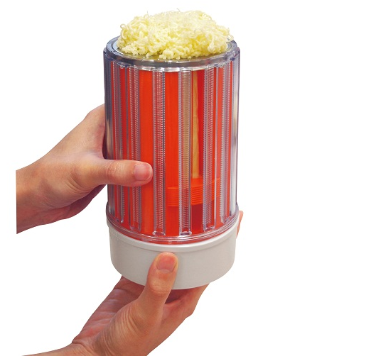 牛油可說是小妹最愛之一,平時塗麵包時都喜歡把牛油塗得滿滿的,但硬硬的牛油不好塗的,塗起來麻煩又不太均勻。Easy Butter Former 就像芝士磨碎器,把牛油放入它後轉動底蓋,可把牛油壓成幼細的條狀如幼麵,直接放在麵包或其他食物上即可食用,這就不用苦思怎樣把又硬又厚的牛油片均勻地分佈在麵包上,方便省時,而且看起來頗美味的,口感應該頗不錯呢!