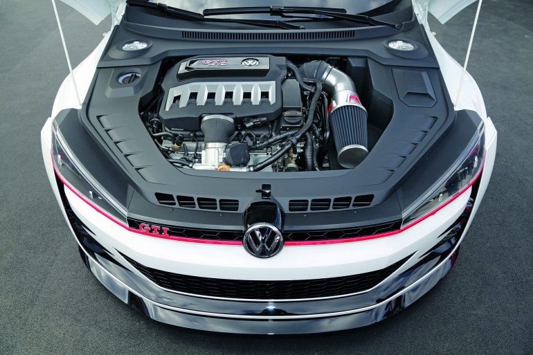 日前 VW 展出了以 Golf GTI 為藍本的概念車 VW Design Vision GTI,此車採用了 3.0L TSI 雙渦輪增壓 V6 汽油引擎,馬力高達 503 匹。