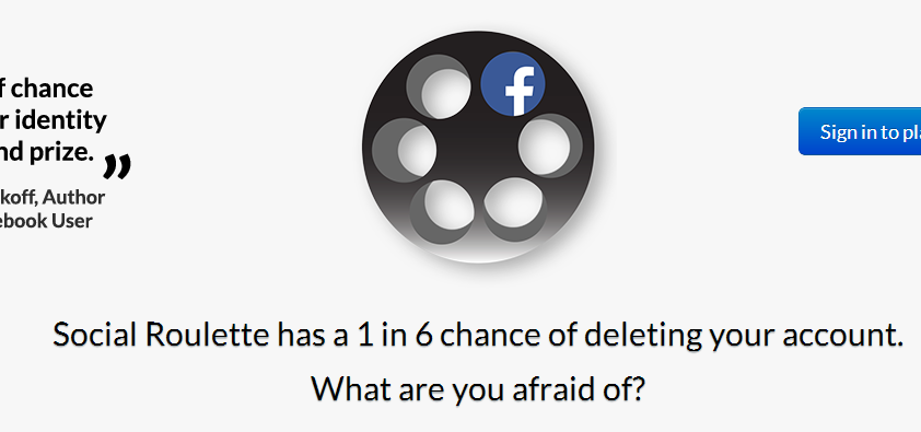 Facebook 充滿著你的生活點滴,聯繫著你的家人、朋友、情人、前情人、前朋友… 到了某個時候,你可能會想「夠了!不玩了!」,想把過去的一切刪除,重新來過。但每日習慣 FB 的我們,這樣做是需要無比的勇氣和決心。這個「Social Roulette」,便是社交版俄羅斯輪盤,每天給你 1/6 機會,能夠把 Facebook 同的 Status、朋友、相片、讚好、遊戲等全部刪除,夠膽玩的朋友就試下啦!
