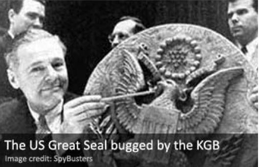 特務電影如 007 常見有各式各樣的小發明,近年的電影道具趨向與廣告贊助掛勾,曾經出現過 SonyEricsson 的手機或 HP 的 PDA。原來在冷戰期間,蘇俄特務所用的法寶亦十分有趣,有網站就結集了當中最出色的 20 件。