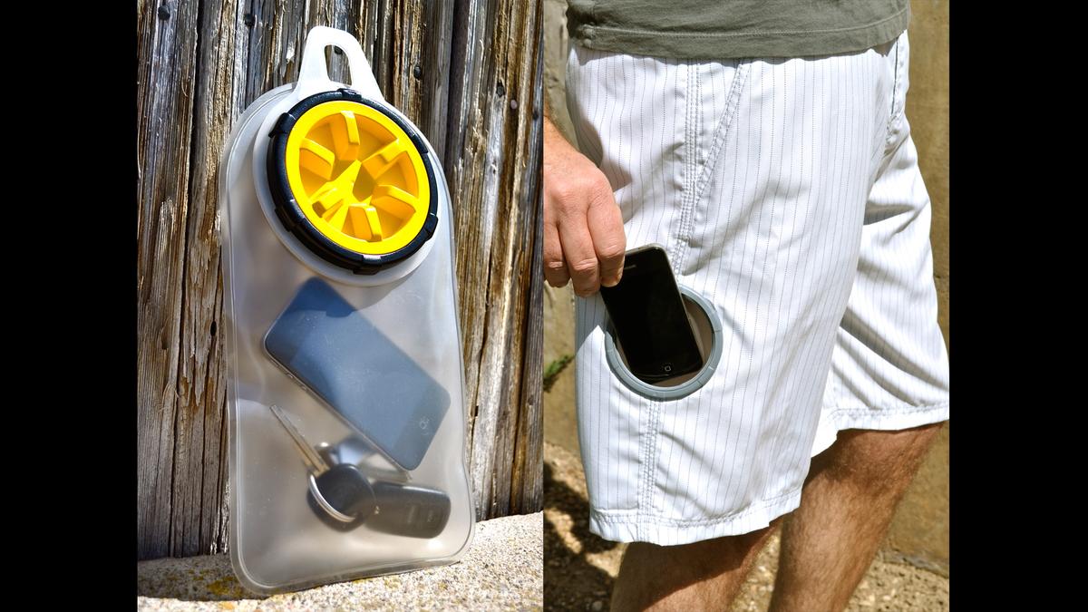 Stash Shorts 的褲管有個直徑約 3.25 吋的塑膠蓋,連接著 1 個厚身防水袋,將膠蓋上緊後就可達到防水效果。開發者表示 Stash Shorts 能放入大部份型號的手機,但透過相片,筆者對此甚有懷疑,尤其是 Galaxy Note 2 這類大屏幕手機。