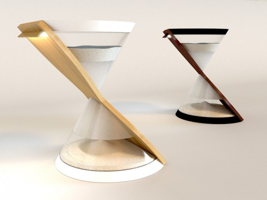看着沙一點一點的流動,感覺看到時間慢慢不動聲息的流逝。沙漏不但可以用來做擺設,設計師 Danielle Trofe 可能深明地球資源愈來愈少,所以發明了 Hourglass Floor Table Lamp 這盞不用連接電線、用動力發電的燈,他在 Wanted Design 2013 上設計了兩盞用沙來發電的燈,時間雖會流走,但它會帶給你燦爛的燈光。