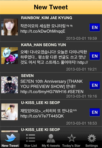 正在韓國舉行的 World IT Show 2013 中,有公司展示了相信會受不少 K-Pop 粉絲歡迎的服務「KSTARTWEE」,1 個專門翻譯 K-Pop 明星 Twitter 的服務。