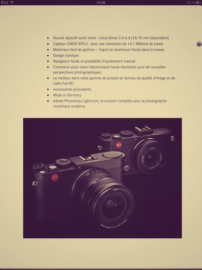 從資料得知,Mini M 將會使用 1,610 萬像素 APS-C 感光元件,與時下的同級機種相近。較為特別的是鏡頭採用不可更換設計,並且是變焦鏡頭,等效焦距範圍及光圈值是 28-70mm f/3.5-6.4,屬於標準類鏡頭,印象中應該是同級機種中第一部採用變焦設計的 APS-C 相機。Mini M 並沒有任何觀景器設計,只有 LCD 屏幕,但就採用手感更佳的鋁合金機身設計,外觀也有著 Leica 特色。據知 Mini M 定價為 2450 歐元,並不便宜,但作為 Leica 粉絲相信也要儲定彈藥吧!