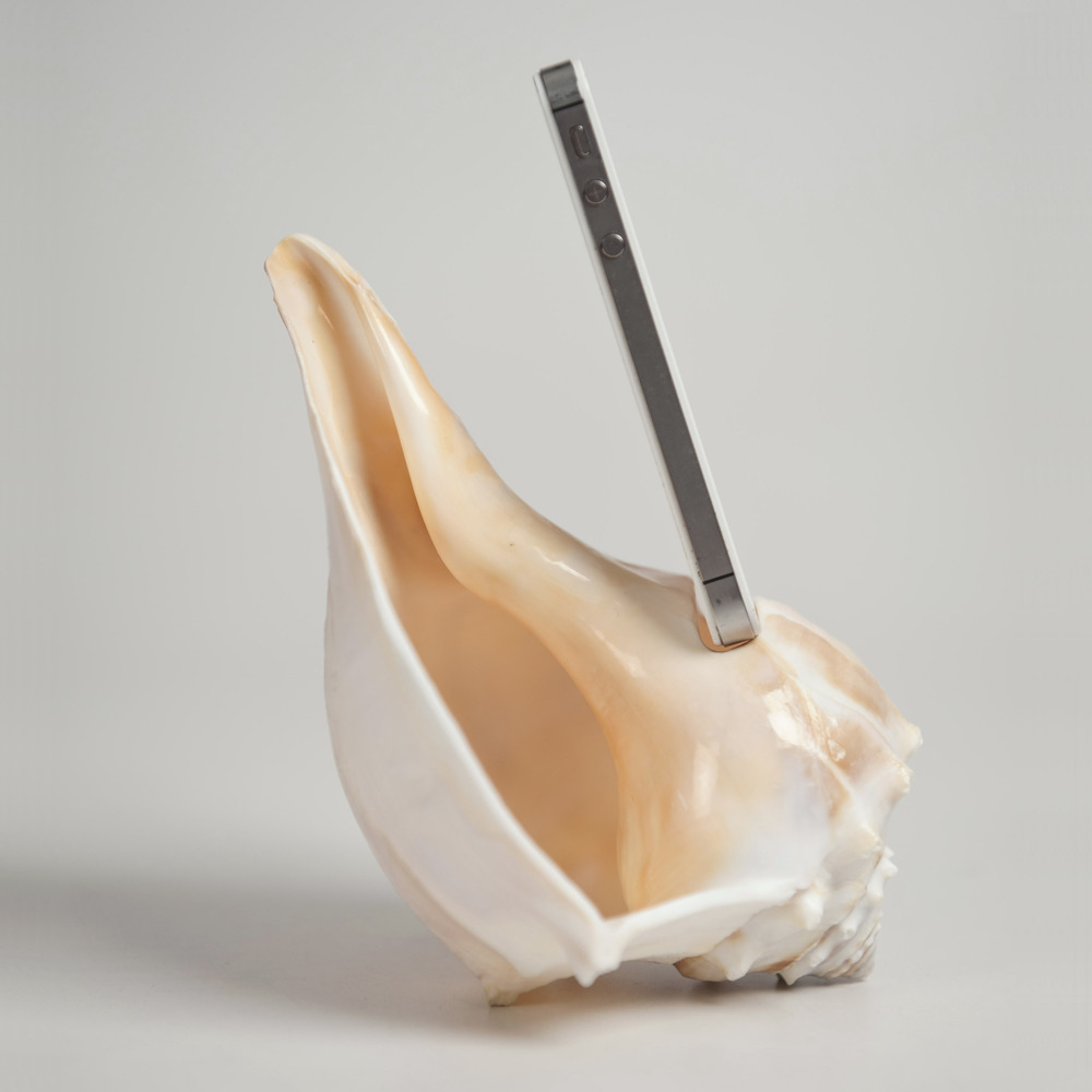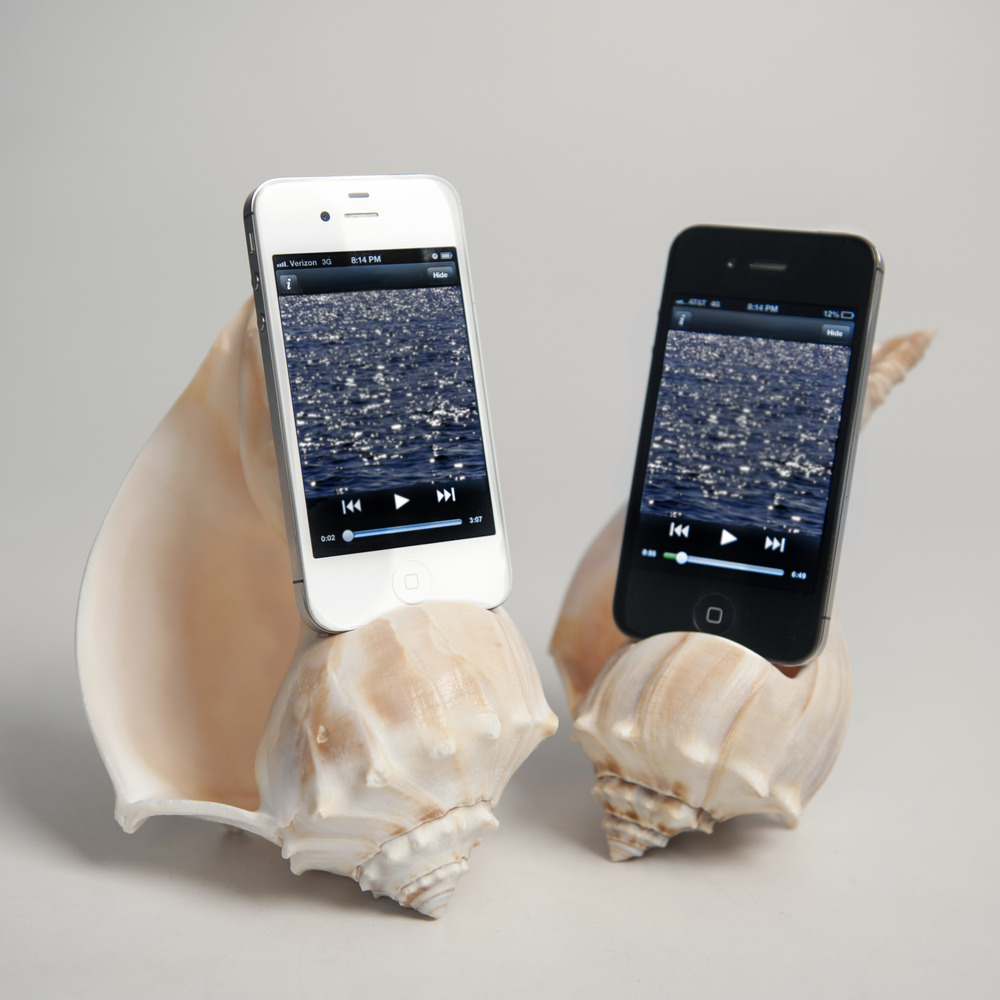 Shellphone Loudspeaker 選用了天然海螺的貝殼改裝而成,經過貝殼輸出的音樂會否特別靚聲就不得而知,但外型就十分好看。相信用作播放海浪聲亦會特別有 Feel。Shellphone Loudspeaker 有 iPhone 4/4s、iPhone 5 和 iPod Touch 型號。售價 75 美元(約 582 港元)