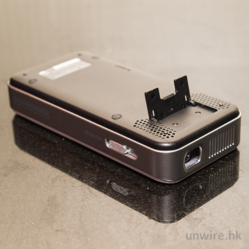 ▼ 前置 DLP 鏡頭,可投放出 5 吋至 65 吋 854 x 480 大屏幕畫面。使用時也需要透過側邊的 Focus 鍵調較最清晰畫面。