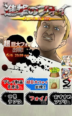 有睇進擊的巨人的朋友都好想打爆那些巨人?大家下載「進撃のフォイ」來滿足一下自己啦!這個 app 某程度上令巨人們變得可愛了,遊戲簡單但都不易玩的,巨人數量多速度快,好難對付的。