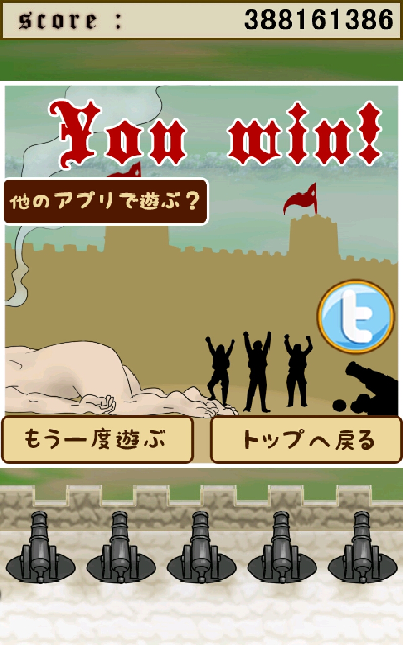 大家玩完不同難易度後,就可以退出挑戰藍色的選項啦!挑戰其他人的記錄,有 5 行大砲,巨人行動又快,對小妹來說真的有點難玩呢!講真這個遊戲大家應該好快會玩厭,過下手癮。