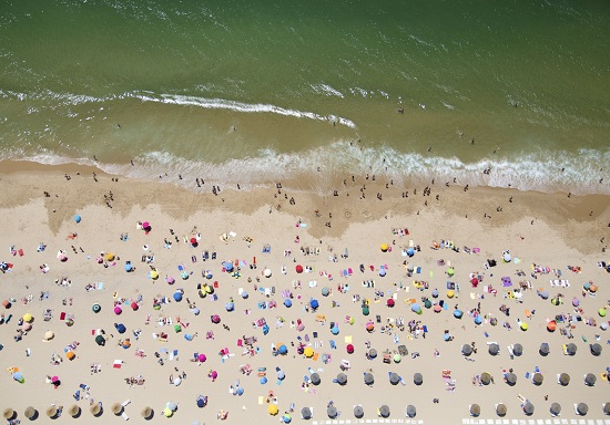 照片是從無門的直昇機上拍下來的,照片拍攝世界各地的沙灘,有澳洲的 Bondi 沙灘,都有歐洲、美國、非洲的沙灘。他的靈感源自於在 Las Vegas 的酒店頂層露台上鳥瞰泳池聚會,他被眼前巨大泳池上壯觀的數百個曬太陽和游泳者迷惑,他拍了一張照片,之後就開始這個項目。