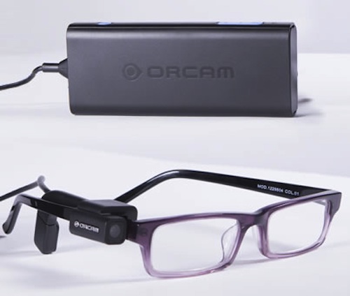 OrCam 是一個類似 Google Glass 的裝置,讓失明人士可以閱讀、辨認物品和親人朋友、認清交通燈號轉變,改善日常生活,可以稱得上為盲人的眼睛。
