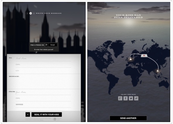 透過親吻觸控屏或對著 Webcam 送吻,挑選適合的唇膏顏色,填好另一半的名字、電郵和所在地,再加上你情深款款的告白,最後填妥下款。你的香吻就會飛越重洋送到遠方另一半的電郵內。
