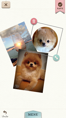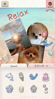 之後到姊妹們都好閞心的貼紙啦!貼紙設計特別又可愛,選擇都算好多,照舊可放大縮細及移動,照片 app 來說真的不錯,充滿少女的味道。