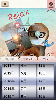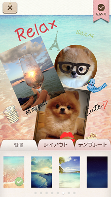 之後大家更可加上日期,記低拍照的時間,更可以選擇日期的字體和顏色,不過不可以改格式的;最後大家就可以改一改背景啦!(次序不分先後)背景設計都特別,優雅的、可愛的、自然的都有,有用拼相 app 的習慣的姊妹可以考慮一下,難得日本著名雜誌都出手設計,可以一試。