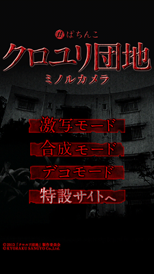這個 App 叫 “ぱちんこ クロユリ団地 ミノルカメラ”,一開 App 時大家會見到 4 個選項,先試第一項啦!即時拍一張照片,app 就會自動幫你加上鬼,未拍時都會有鬼在鏡頭前出現,都幾恐怖的。