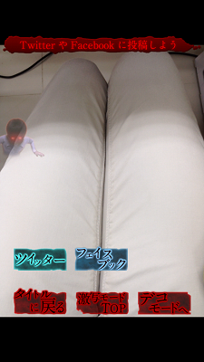 第 3 項則讓大家拍一張照片或在照片庫中選一張照片出來加工,大家用這個模式可以自己加工,加鬼及加框嚇朋友,貼紙可校大小,不過相框和貼紙都不太可怕的,但有劇中角色如女主角、神婆等,大家可能會好有親切感。