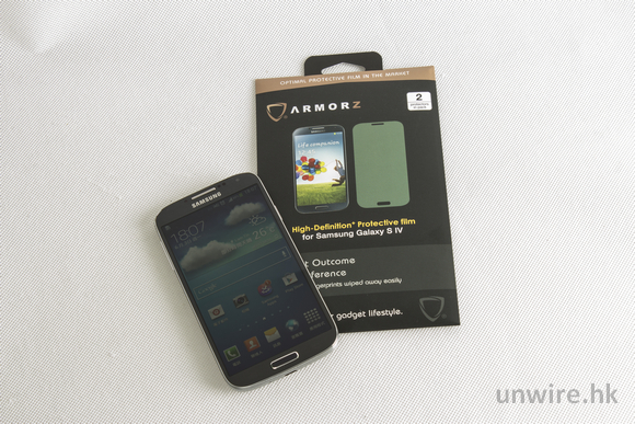 ▼ 可完美支援 Samsung Galaxy S4,其 Cutting 設計十分 Fit 位,而包裝內有 2 張一式一樣的保護貼及抹布。