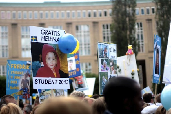 踏入 6 月大街小巷都充斥著高中生的嬉笑聲和狂歡的強勁節拍和音樂,因為他們都畢業了。在瑞典畢業是件大事,男生會穿一身筆挺西裝,女生則挑選性感漂亮的白裙,但無論男女都會頭戴一頂代表畢業的學生帽,裡面滿載著最好朋友的簽名。他們的畢業慶祝會在廣場舉行,家長們訂造示威一樣的大牌,上面印著仔女小時候的相片,上面寫著「我們的 Elin 大個女,恭喜你畢業了!」,然後全家上下裝扮靚靚影一輯畢業照。最後當然少不了年輕人狂歡時刻,習慣上學生會租部大貨車,然後所有畢業同學會在車上圍著城市又唱又跳,喧嘩叫囂。