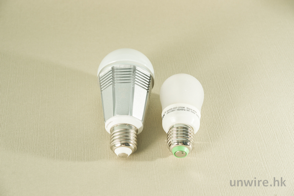 ▼ Tabu Lumen 本身是個 7W LED 燈膽,與一個 9W 慳電膽比較可見體積分別。