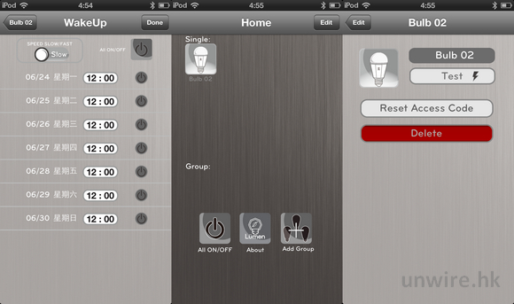 Tabu Lumen 的最特別之處是支援藍牙功能,配合 App 使用可以控制其開關、亮度及不同顏色,創造出色彩繽紛的室內環境,還可以有閃爍等 Disco 效果,最適合家中開 Party 時製造另類氣氛。另外 App 也有排程功能在不同時間自動開關,也可以一次過為不同的 Tabu Lumen 作分組設定,一次過控制所有燈膽,當然個別控制也可。目前只有 iOS App (免費) 可下載使用,裝置方面亦要支援藍牙 4.0 才可,其他平台則要稍後才會提供。