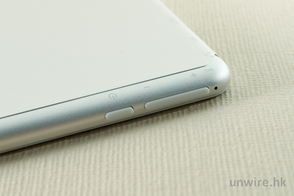 ▼ 機身側的大細聲鍵及開關制,亦可見到其強烈的金屬質感,較一般平板精美得多。