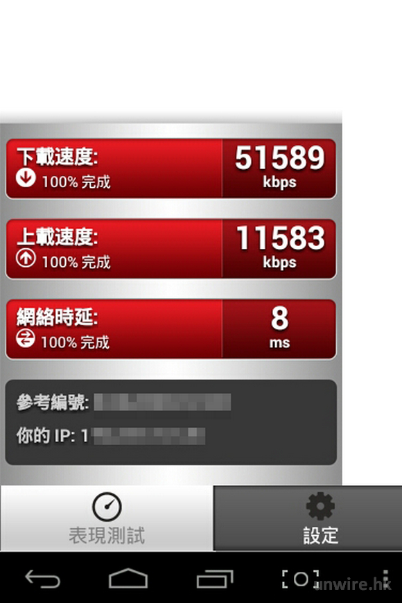 ▼ 利用 OFCA 測試其 802.11n 效能,下載速度達 51.59Mb/s,比起不少平板要快,不過上傳則較慢。