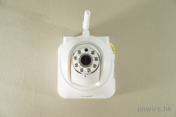 EasyN H3-187V 採用了百萬像素 CMOS 感光元件,可以支援最高 720p 拍攝功能,鏡頭可以「上下左右」移動,水平及垂直分別有 355 度及 120 度轉動能力,幾乎可以看清四周。而最突出的是鏡頭四周備有八顆 LED 燈設計,可以在晚上提供照明效果,照射範圍達 10 米,也有紅外夜視及彩色濾鏡設計在黑暗環境下查看影像,十分適合作保安用途,如店舖或辦公室等環。H3-187V 能夠兼容最新的 802.11n 制式網絡,並提供簡易的 WPS 設定,在遠距離使用下仍能夠保持高速度及接收能力,確保影像更加實時。在設定前使用 LAN 線設定方式便可,其餘設定可以透過無線功能修改。有趣的是機身備有 Barcode 讓用家以手機掃瞄其資料,不需要人手輸入機身號碼,但也提供自動偵測功能,所以實際上可有可無。