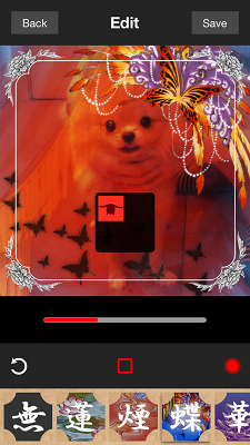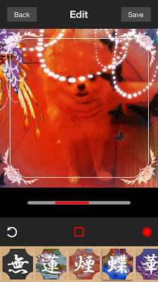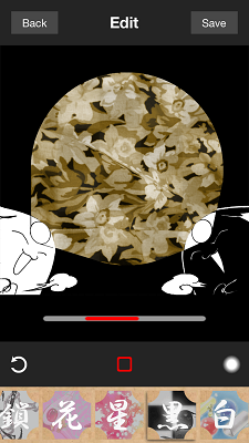 這個 app 叫 “CLAMP camera”,app 內有 11 個濾鏡,名為蓮、煙、蝶、華、裏、葉、鎖、花、星、黒、白,濾鏡有半透明花紋會遮擋照片,大家可以在屏幕左、右掃至適用的圖像,濾鏡都有得調校,都幾有趣的,另外背景有兩層,大家不喜歡的話都可以刪除一層濾鏡。有興趣更可加入一些特別的框框,充滿漫畫味。濾鏡有層次又特別,不過真的會遮擋照片,要小心分配圖案,大家都試玩一下啦!