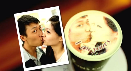 之前提過日本咖啡師的 3D 拉花,現在台灣同樣玩另類的 Latte 藝術,就是把照片「曬」在咖啡面,即當你叫一杯咖啡時,就把你的照片用泡沫印上咖啡表面,讓你把自己的照片飲下去。