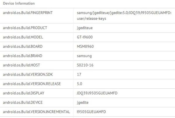 Galaxy S4 型號為 GT-I9500,根據過往的升級步伐資料中得知,GT-I9600 很大機會是 Galaxy S5。日前出現的測試資料見到就是 GT-I9600,以升級時間表去推斷不應該會是 Galaxy S5,但有機會是 Galaxy S4 的變種或加強版本,就如 Samsung 在韓國會推出 Galaxy S4 LTE-A 版本一樣。不過硬件升級也不是最為吸引,而是配備了尚未推出的 Android 5.0,即代表 Samsung 已為 GT-I9600 測試新的 Android OS,可能已經準備就緒隨 Google 一起推出。據之前的消息透露表示,Android 5.0 所佔用的資源更少,512MB 記憶體也能夠順暢運作,但廠商會否為舊機升級則是另一回事。