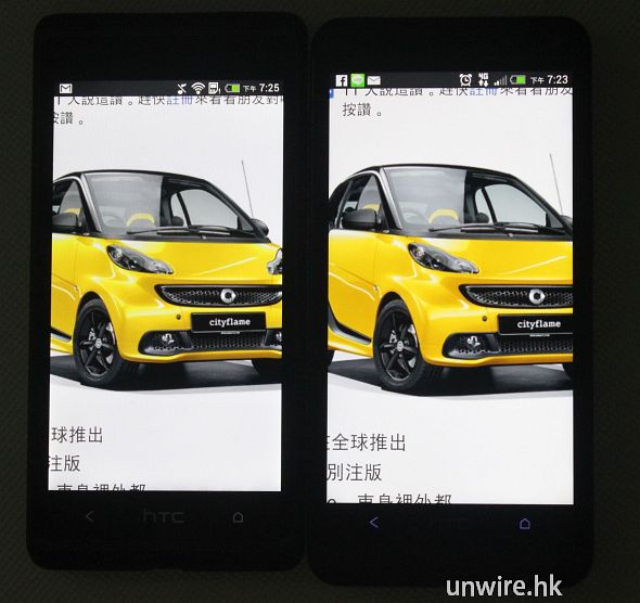 ▼ 接下來測試瀏覽網頁,左方是 Desire 600,右方是 HTC One,看這張圖小記的確看不到有甚麼分別,的確是一件好事。