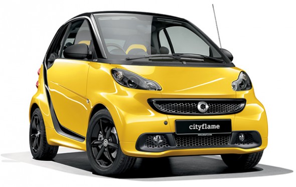 別注版 Cityflame ForTwo 使用 15 吋三輻式合金輪圈連寬大的輪胎,充滿動感的前進氣柵和車門上黑色的後視鏡,引擎方面為 1.0L 3 汽缸直列式吸氣引擎,提供 70 匹馬力。平治會在全球限量推出 2,400 部 Cityflame ForTwo,包括 Coupe 和開蓬 Cabrio 兩款。