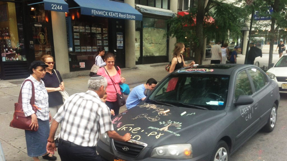 20 歲的大學生 Romano 將他的 Hyundai Elantra 全身塗上啞黑漆油,令到車身變成流動黑板。過去數天,他掛上「DRAW ON ME」(在我身上畫畫)的車牌,遊走於紐約大街小巷,然後在汽車上提供粉筆,看看途人的反應。