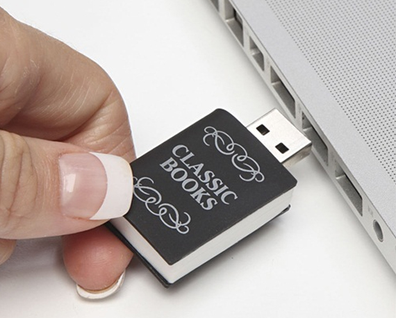 圖中的書本型 USB 儲存棒可說是一個可攜式圖書館,因為內裏收錄了 3 千本外國經典名著,當中包括 Charles Dickens、Jane Austen、Oscar Wilde、Emily Bronte 等作家的作品。