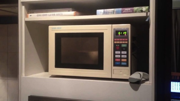一名開發者 Nathan Broadbent 利用 Raspberry Pi 電腦改裝微波爐,讓舊款的微波爐智能化,不但擁有自動時鐘設定,還可以配合 Barcode 條碼自行煮食和以 iPad 作無線操控。
