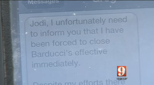 炒人都需要妙計?美國佛羅里達州餐廳 Barducci 似乎想到了一個自以為辭退大批僱員的好方法,方法就是短訊通知。假如有一天你的老闆發送一個訊息給你,關於公司需要關閉而炒退你的訊息,你會有甚麼反應呢?