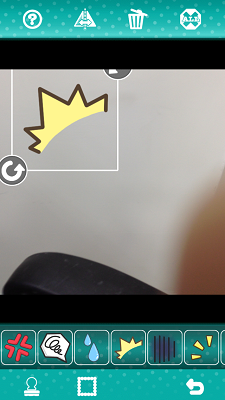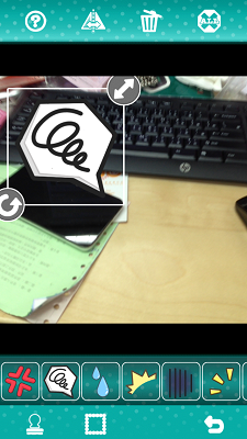 頂排最左邊的選項是切換回拍照的選項,問號是使用說明,按三角形 icon 可把貼紙左右倒轉,垃圾桶是刪除貼紙的,最後按剔號可儲存照片。這個 app 是免費下載的,雖然小妹覺得唔夠玩,不過都可以一試。