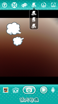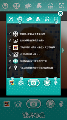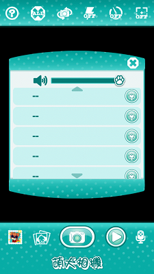頂排則是使用說明、刪除所有貼紙及相框、轉鏡頭、閃光燈、計時器、對焦 (左至右) 的選項,拍狗狗時好多選項都未必適用,照片拍好了仍可作後期加工的。
