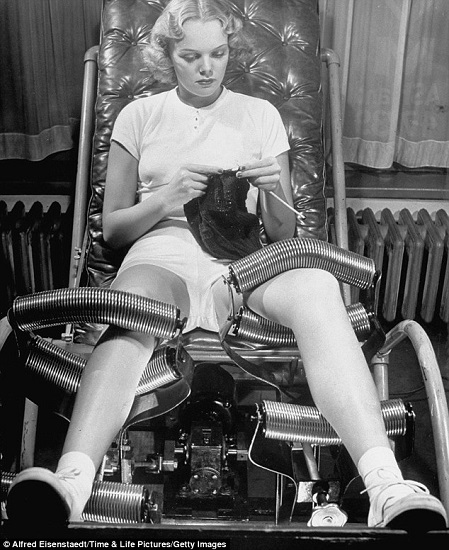 古時的減肥療程,用金屬滾輪按摩腿部,其實跟現在的減肥療程不算好大分別。