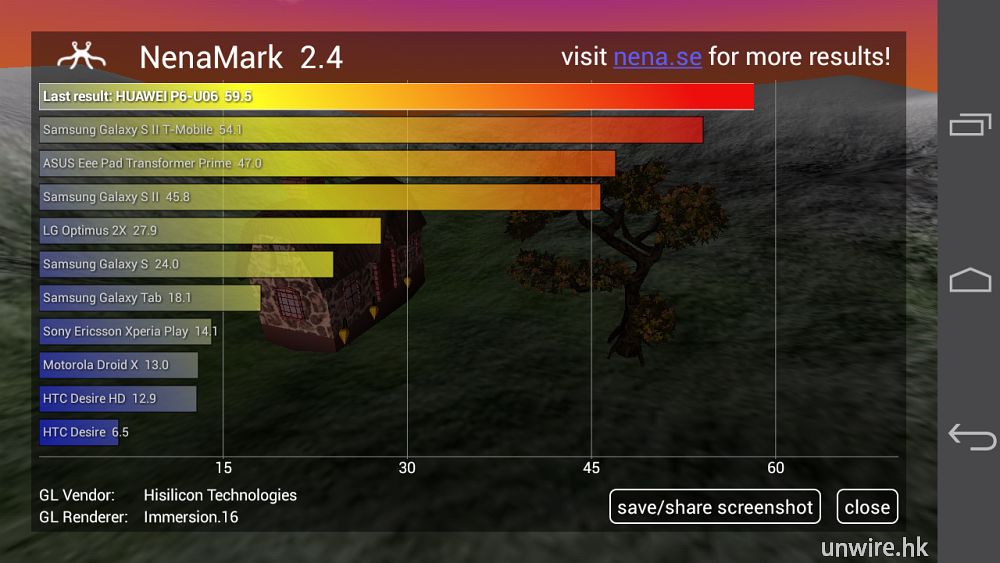 ▼ NenaMark 獲得近滿分的 59.5fps。