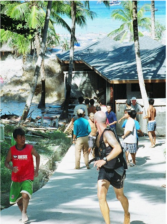 2004 年 12 月 26 日拍攝的這張照,照片中人正在逃離海嘯。