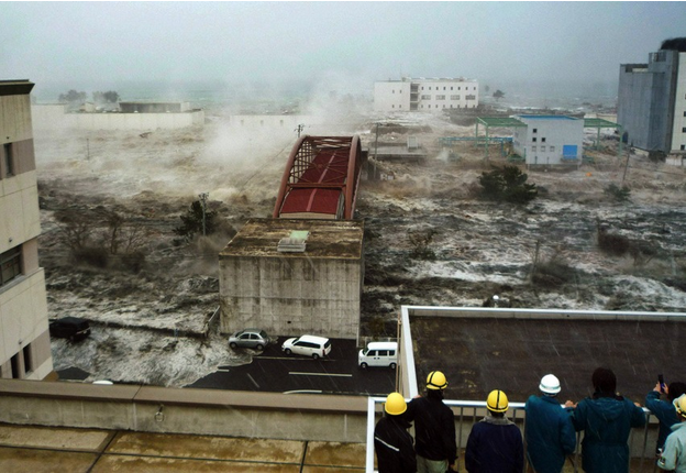 仙台城市官員在 2011 年 3 月 11 日 Hiroshi Kawahara 拍攝的,2011 年 3 月 25 日由 Jiji Press 發佈出來,顯示了一個被洪水吞噬的城市。