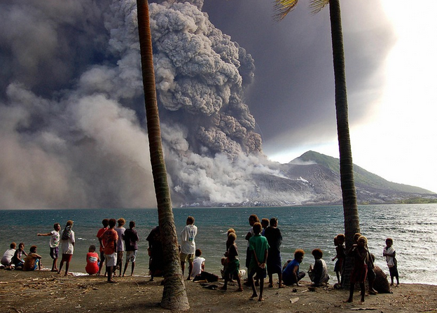 撤離 Matapit 的島民看烏魯火山爆發,整個城市滿佈火山灰和岩石。