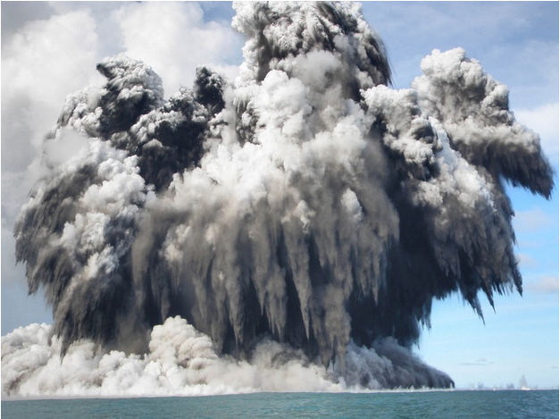 2009 年 3 月 18 日在 Tongatapu 海岸 6 至 7 公里的海底火山爆發,造成大量羽狀蒸氣和煙霧數。