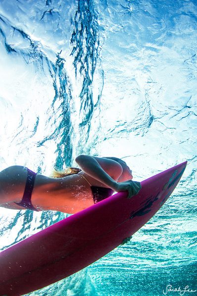 拍攝這些美妙的照片看來都不容易,她泳術精湛及花了很多時間在泳池和海洋,好想捕捉她所見的人與水的相互作用。她在水底拍攝衝浪者是因為 Big Island 的水真的十分清澈及漂亮,而水底下的情況通常比水面上的波浪吸引,她享受跟水融為一體,她尤其喜歡在海中水底攝影因為在水底的狀態不斷變化,光線、水的透明度、水流、海浪等都不受控制,你要隨時適應。