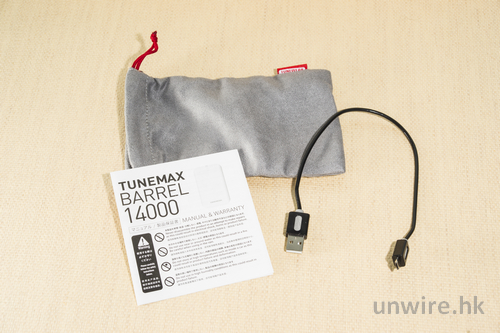 除了充電外,兩款均提供白色 LED 燈設計,長按開關制約 2 秒便會自動開啟,提供緊急照明用途,雖然亮度一般,但有時候尋找東西時就需要一點光明,令充電器增添多一點色彩。TUNEMAX BARREL 14000 有黑白 2 種顏色可以選擇,而 TUNEMAX BARREL 9000 則再多一款紅色,更適合女生使用。而機身也附送 1 條 USB 充電線及絨布袋,令大家更方便攜帶。