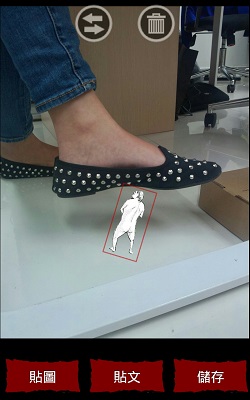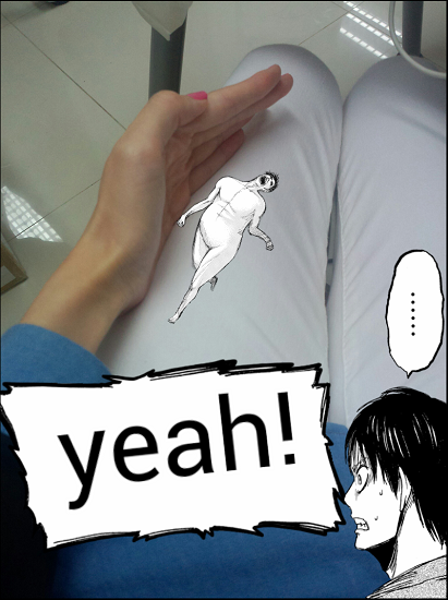 這個 Android app 叫「進擊的巨人相機」,你先拍張照片或在照片庫中找一張照片,之後配合你的創意加上貼圖、文字,貼圖、文字都可以調校大小和轉動架!貼圖更可左右調轉,完成就可以儲存啦!大家大可以把巨人當「小人」般捉住、甚至踩他們都得。