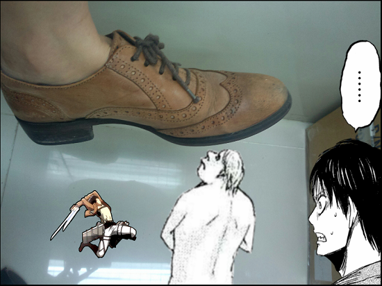 這個 Android app 叫「進擊的巨人相機」,你先拍張照片或在照片庫中找一張照片,之後配合你的創意加上貼圖、文字,貼圖、文字都可以調校大小和轉動架!貼圖更可左右調轉,完成就可以儲存啦!大家大可以把巨人當「小人」般捉住、甚至踩他們都得。