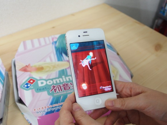 Dominio’s Pizza 在日本推出 Domino’s x 初音推廣,顧客以 iPhone App 下訂單,送貨時薄餅會以初音外賣紙盒送到。幸運的話,速遞員還會用初音特別版電單車送貨。 手機 App 讓用戶下載 Wallpaper 和拍攝初音相框的相片外,只要將 iPhone 對準 Pizza 外賣盒就會出現 AR 效果,初音就會即時表演一場迷你演唱會。 來源:rocketnews24