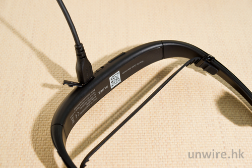 ▼ 佩戴後按鍵會全在後腦下方,其實也算方便操。大家也可以見到 microUSB 接頭也在其中。